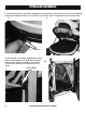 STROLLER ASSEMBLY To open the front canopy on your stroller, simply push the release button located on the front of your stroller and lift the canopy shown in Figures J and K. To close the front of your stroller, clip the canopy back into the front of the stroller. J. K. Release elease Button To open the back of your stroller, simply push the release button located on the back of your stroller and open the rear door shown in Figures L and M.