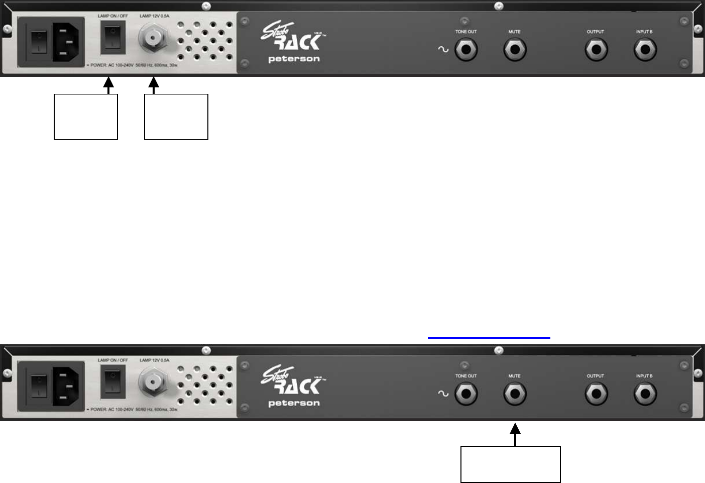 rear panel to remotely mute the StroboRack’s output signal for silent tuning.