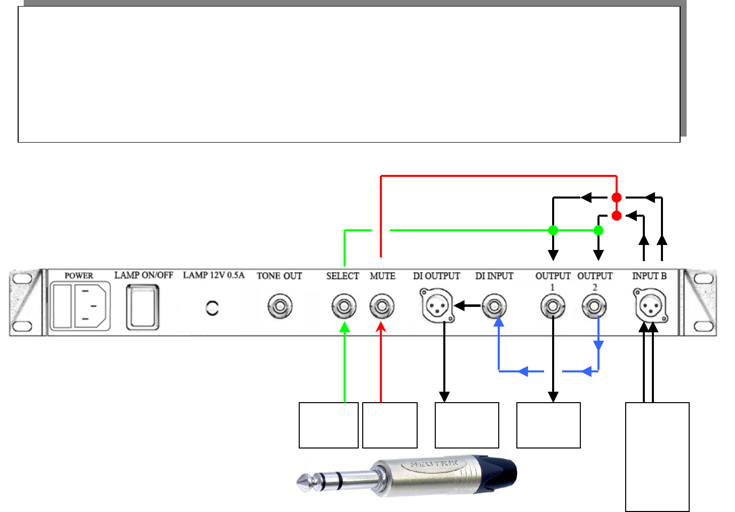 Input Signal: Input B only - Stereo (TRS Unbalanced)* Tip to output 1, Ring to output 2