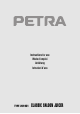 PETRA CLASSIC SALOON JUICER ART. 201951 Please read these instructions at your leisure and save them for future reference. The PETRA JUICER is ideal for rapidly squeezing all types of citrus fruits and is an attractive addition to any kitchen. Before using, we suggest that you wash the separate components (not the base motor). Refer to the section “CLEANING”. DESCRIPTION 1. 2. 3. 4. 5. 6. 7. 8. 9.