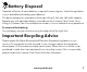 Eliminación de las baterías En muchas regions se requiere que la recogida de las baterías gastadas se haga por separado, compruebe las normas de su área antes de desechar baterías gastadas. Este dispositivo funciona con una pila del tipo Litio 3 voltios con 160 mAH de capacidad. Cambiéla sólo por una batería equivalente recibida una vez que haya llamado al Centro de atención al cliente. Para obtener un listado de los números de teléfono del Centro de atención al cliente, visite nuestro sitio web www.