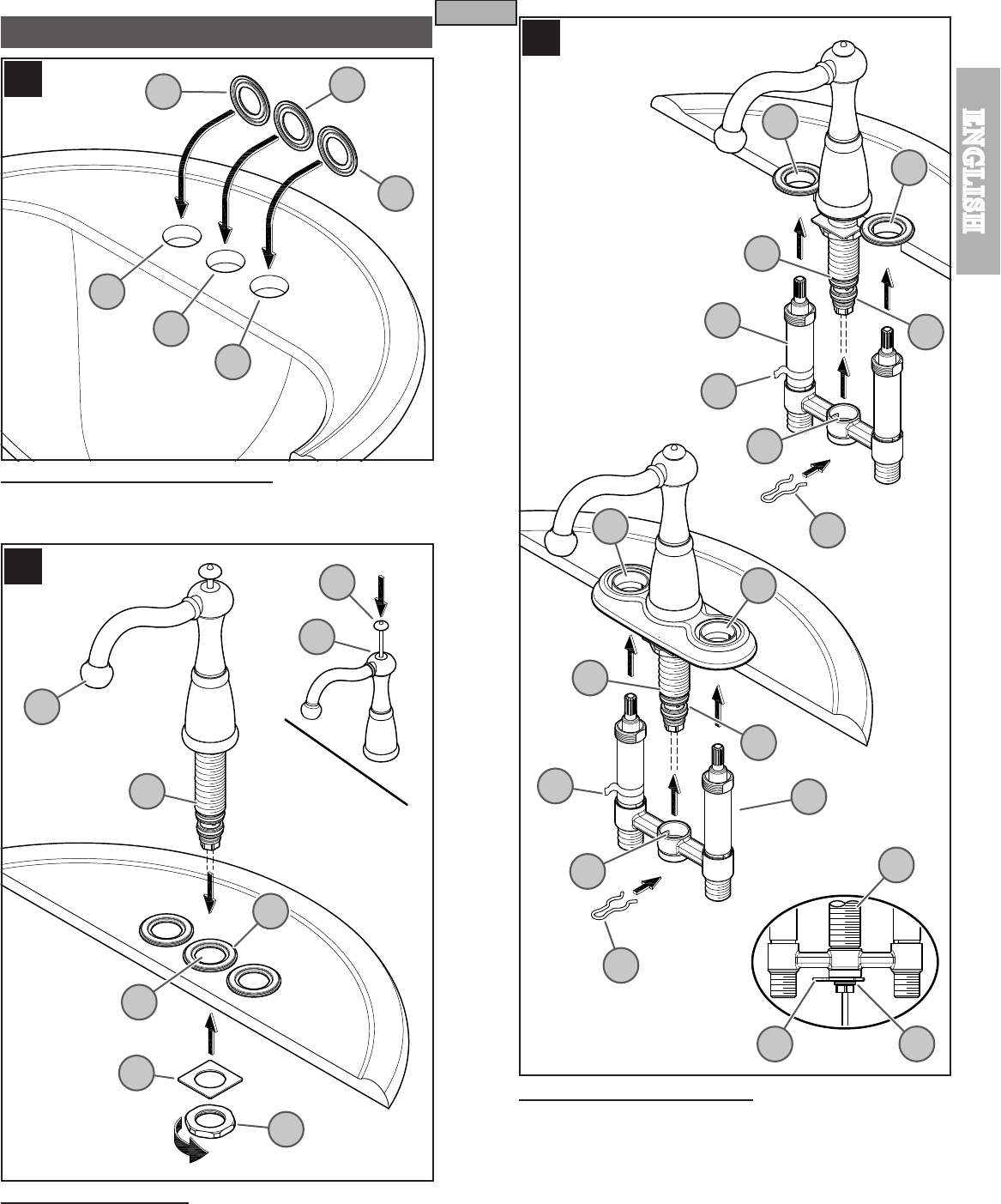 Spout Gasket (7D) and Center Sink Hole (7E). From underneath sink, place Thrust