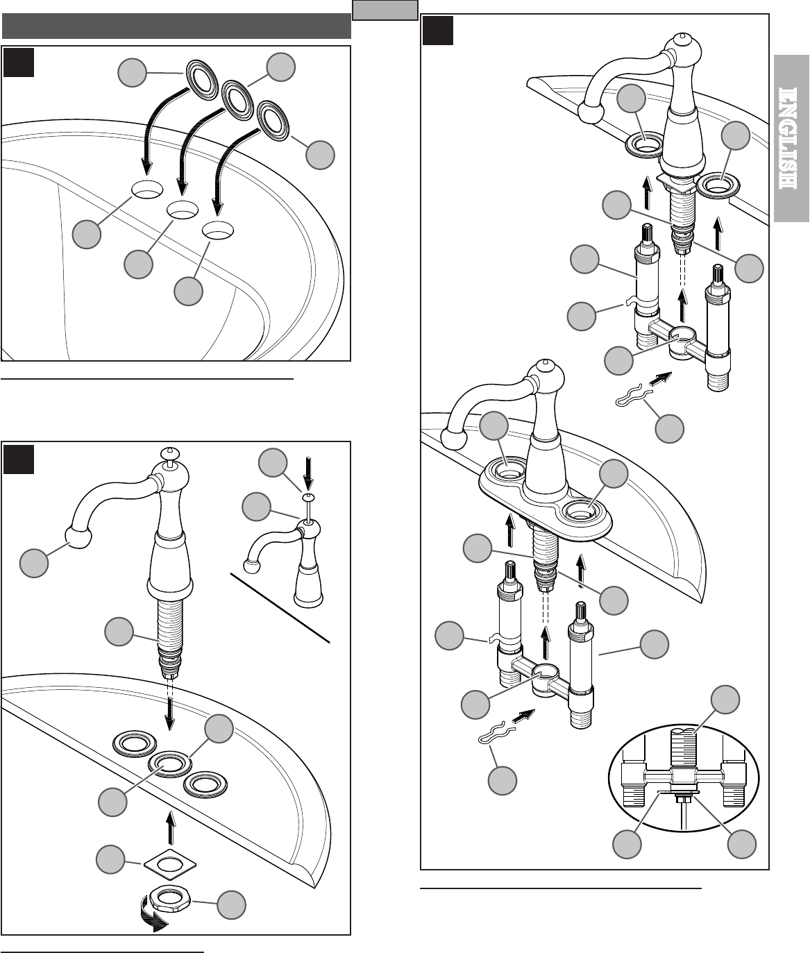 del conducto (7D) y el agujero central (7E) del fregadero. Desde abajo del fregadero,