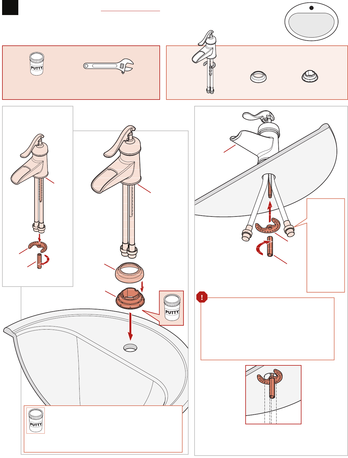 Plate (D). Use plumber's putty according to manufacturer's instructions