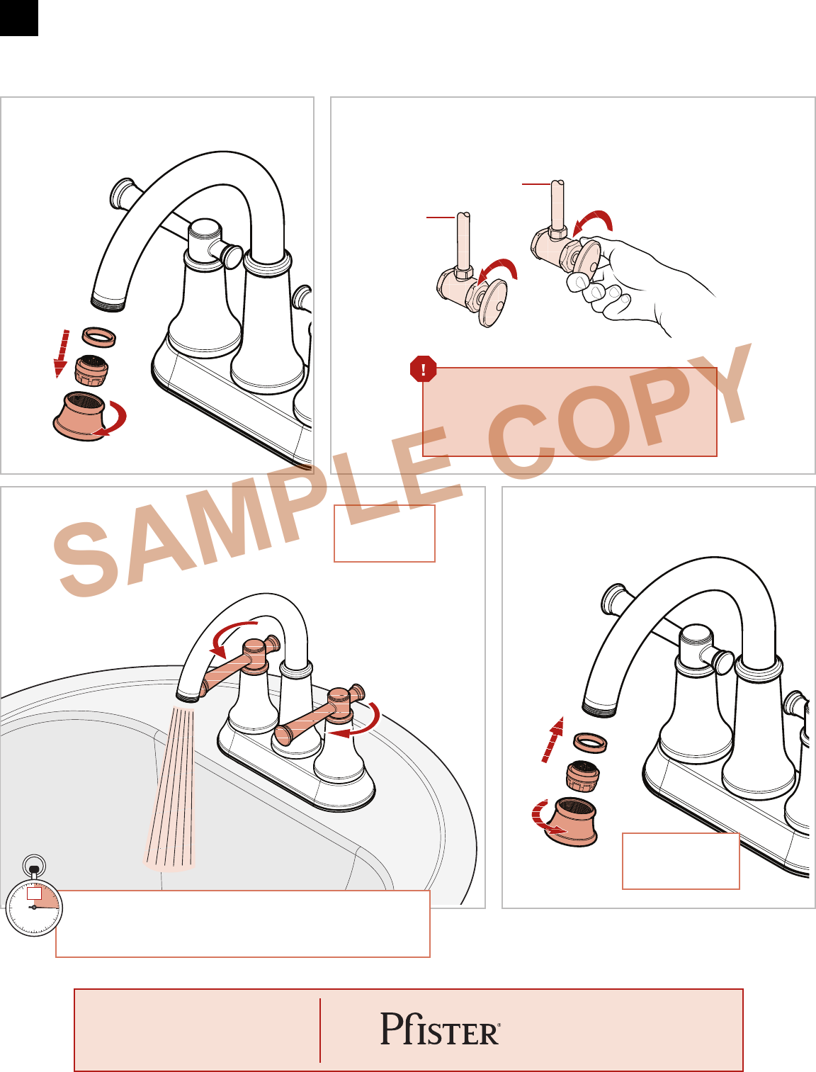 Deje correr el agua caliente y fría durante al menos 15 segundos cada una.