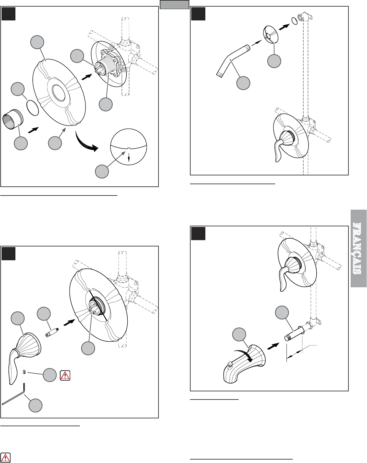 (10A) doit dépasser de 9,7 à 10 cm (3 ⅞ à 4 po) du mur fini. Visser le bec de