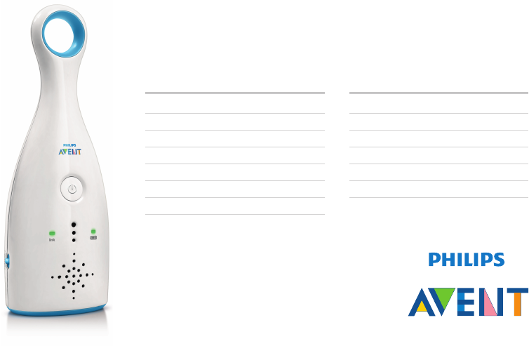 1 Introduction Congratulations on your purchase and welcome to Philips AVENT! To fully benefit from the support that Philips AVENT offers, register your product at www.philips.com/AVENT. Philips AVENT is dedicated to producing caring and reliable products that give parents the reassurance they need when looking after the health and safety of their baby. This Philips AVENT baby monitor parent unit is designed to be used with models SCD485 and SCD486.