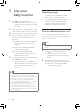 5 Use your baby monitor 1 2 3 4 Press on the parent/baby unit. »» The parent/baby unit turns on, and all indicators on the parent/baby unit light up briefly. Keep the baby unit and the power cord at least 3.5 feet/1 meter away from your baby. Use the parent unit in the operating range. Set the parent unit and the baby unit to the same channel, either Channel 1 or Channel 2. »» The link indicator flashes red and the parent unit starts to search for the baby unit.