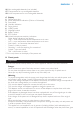 English 7 16 Non-rechargeable batteries (not included) 17 Compartment for non-rechargeable batteries 18 Lid of compartment for non-rechargeable batteries C Display 1 Temperature alert 2 Room temperature indication (Celcius or Fahrenheit) 3 Sound alert 4 Humidity indication 5 Paging symbol 6 Lullaby symbol 7 Nightlight symbol 8 Battery symbol 9 ECO symbol 10 Volume/microphone sensitivity indications -- Other display indications (not shown): -- ’High’ = room temperature above temperature set in menu