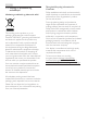 1.Viktig Taking back/Recycling Information for Customers 1.3 Kasting av produktet og emballasjen Philips establishes technically and economically viable objectives to optimize the environmental performance of the organization's product, service and activities. Håndtering av elektrisk og elektronisk avfall From the planning, design and production stages, Philips emphasizes the important of making products that can easily be recycled.