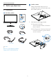 2. Sette opp skjermen Installer stativet 2. Sette opp skjermen 1. Plasser skjermsiden ned på en myk overflate, pass på at du ikke skraper opp eller skader skjermen. 2.1 Installasjon Innholdet i pakken 238G4 2. Hold stativet med begge hender. (1) Fest stativet forsiktig i VESA-montasjeområdet til låsehaken låses til stativet. (2) Bruk fingrene til å stramme skruen på bunnen av sokkelen, og fest sokkelen stramt til stativet.