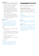 1. Pomembno 1. Pomembno Ta elektronski uporabniški priročnik je namenjen vsakomur, ki uporablja monitor Philips.Vzemite si čas in preberite ta uporabniški priročnik, preden monitor začnete uporabljati.Vsebuje pomembne informacije in podatke o upravljanju vašega monitorja. • Med delovanjem monitorja ne izpostavljajte raznim vibracijam ali pogojem, v katerih bi se zadeval ob druge predmete. • Med njegovim delovanjem oziroma transportom pazite, da monitorja ne izpostavljate udarcem oziroma padcem.