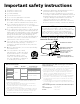 Important safety instructions 1. 2. 3. 4. 5. 6. 7. 8. 9. 10. 1 1. 12. Read these instructions. Keep these instructions. Heed all warnings. Follow all instructions. Do not use this apparatus near water. Clean only with dry cloth. Do not block any ventilation openings. Install in accordance with the manufacturer’s instructions. Do not install near any heat sources such as radiators, heat registers, stoves, or other apparatus (including amplifiers) that produce heat.