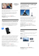 1.7 Теледидарды және жазбаларды уақытша тоқтату USB қатты дискісін қоссаңыз, сандық теледидар арнасынан таратылымды кідіртуге және жазуға болады. Дүние жүзінің кез келген жерінен достарға қоңырау шалуға және оларды көруге болады. Бейне қоңырау шалу үшін кірістірілген микрофоны бар камера және интернетке жақсы қосылым қажет. Кейбір Philips теледидарларында кірістірілген камера және микрофон бар. Help (Анықтама) тармағында Keywords (Кілтсөздер) түймесін басып, қосымша ақпарат алу үшін Skype деп іздеңіз.