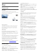 14 Мәзір жолағы және сұрыптау Фотосуреттер, бейнелер және музыка USB құрылғысы қосылып тұрғанда Теледидар файлдарды түрі бойынша сұрыптайды. Мәзір жолағына өтіп, іздеген файл түрін таңдаңыз. Егер компьютердегі файлдарды шолсаңыз, файлдарды және қалталарды тек компьютерде реттелгендей түрде шолуға болады. 14.1 USB қосылымынан немесе желілік компьютерден Мәзір жолағы Мәзір жолағына өтіп, көретін немесе ойнатылатын файл түрін таңдаңыз.