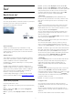 1.7 Pozastavenie TV a nahrávanie Ak k televízoru pripojíte pevný disk USB, môžete pozastaviť a nahrávať vysielanie digitálnych televíznych kanálov. Môžete vidieť svojich priateľov kdekoľvek na svete a hovoriť s nimi. Na uskutočňovanie videohovorov potrebujete kameru so vstavaným mikrofónom a rýchle pripojenie na internet. Niektoré televízory Philips majú zabudovanú kameru a mikrofón. Ak chcete získať ďalšie informácie, v položke Pomocník stlačte tlačidlo Kľúčové slová a vyhľadajte položku Skype.