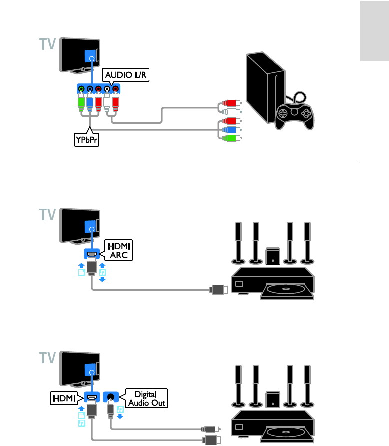 Připojte herní konzolu k televizoru pomocí komponentního videokabelu (Y Pb Pr) a zvukového