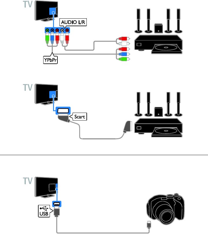 Připojte digitální fotoaparát k televizoru pomocí kabelu USB.