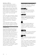Što moţete učiniti NonPu blish Pomoću internetskih aplikacija, odnosno posebno prilagođenih internetskih web-mjesta, moţete uz mnoge druge koristiti i ove značajke: Čitanje naslova časopisa Gledanje i posudba videozapisa Provjeravanje vremenske prognoze Naknadno gledanje televizijskih emisija koje ste propustili Više o servisu Smart TV saznajte na web-mjestu foruma Smart TV www.supportforum.philips.com. Napomena: Aplikacije i usluge Smart TV razlikuju se ovisno o drţavi.