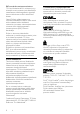 Suomi Ohjelmiston päivittäminen internetin kautta Voit päivittää television ohjelmiston myös suoraan Internetin kautta liittämällä television Internetiin. Saat lisätietoja kohdasta Television liittäminen > Verkkoon ja Internetiin yhdistäminen (Sivu 59). 1. Paina -painiketta. 2. Valitse [Asetukset] > [Päivitä ohjelmisto] > [TV ja Internet] ja paina OK-painiketta. 3. Aloita päivitys noudattamalla näytön ohjeita. Kun päivitys on valmis, TV siirtyy valmiustilaan ja kytkeytyy uudelleen automaattisesti.