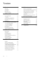 Tartalom 1 2 3 4 5 Fontos! 3 Biztonság Karbantartás Jogi háttér Fenntarthatóság Súgó és támogatás 3 4 5 8 9 A TV-készülék használata 10 A tv kezelőszervei TV-nézés A műsorfüzet megtekintése Multimédia fájlok lejátszása Smart TV Interaktív TV 10 12 17 18 22 25 TV-nézés felfüggesztése TV-műsorok felvétele A Skype™ használata Játék játszása A teletext megtekintése Zárak és időzítők beállítása 26 27 30 35 35 37 A TV-beállítások módosítása 39 Kép és hang Csatornák Műholdbeállítások Nyelvi beállí
