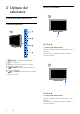 2 Utilizzo del televisore Sensori e indicatori Controlli del televisore Controlli posteriori Per PFL4xx8 1. Sensore del telecomando Puntare il telecomando direttamente verso il sensore. Verificare che il segnale del telecomando non sia bloccato. 1. (Standby): consente di accendere o spegnere il televisore. 2. CH +/-: consente di passare al canale successivo o precedente. 3. (SOURCE): consente di guardare un dispositivo collegato. 4. +/- (Volume): consente di aumentare o ridurre il volume. Per PFL3xx8 1.