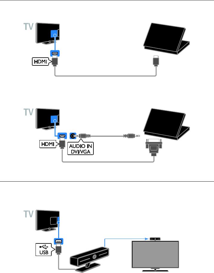 Komputer należy połączyć z telewizorem za pośrednictwem kabla HDMI.