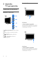2 Uporaba TV-sprejemnika Senzorji in lučke Tipke/lučke na televizorju Nastavitve na hrbtni strani Za PFL4xx8 1. Senzor za daljinski upravljalnik Usmerite daljinski upravljalnik proti senzorju. Poskrbite, da med daljinskim upravljalnikom in televizorjem ne bo ovir. 1. (Stanje pripravljenosti): vklop ali izklop TV-ja. 2. CH +/-: preklop na naslednji ali prejšnji kanal. 3. (SOURCE): gledanje priključene naprave. 4. +/- (Glasnost): povečanje ali zmanjšanje glasnosti. Za PFL3xx8 1.