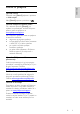 Povezava z omreţjem in internetom Priključitev Moţnosti Ogled predstavnosti Če televizor poveţete z domačim omreţjem, lahko predvajate fotografije, glasbo in videoposnetke iz računalnika. Glejte Uporaba TV-sprejemnika > Predvajanje večpredstavnih datotek (Stran 18). Smart TV Če TV priključitev v domače omreţje z internetno povezavo, lahko brskate po funkciji Smart TV. Smart TV ponuja internetne storitve in spletna mesta, prilagojena vašemu televizorju.