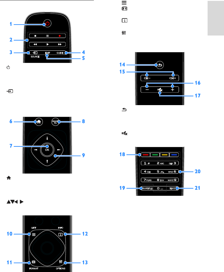 20. 0-9 (Številske tipke): izbira TV-kanalov