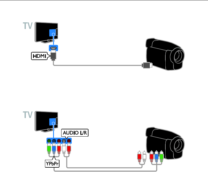 Priključite digitalno videokamero na televizor s kablom za sestavljeni vid