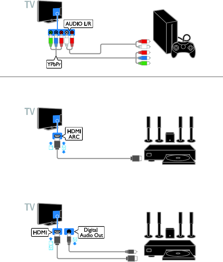 υνδέστε την κονσόλα παιχνιδιών με ένα καλώδιο σήματος συνιστωσών (Y Pb Pr) και ένα