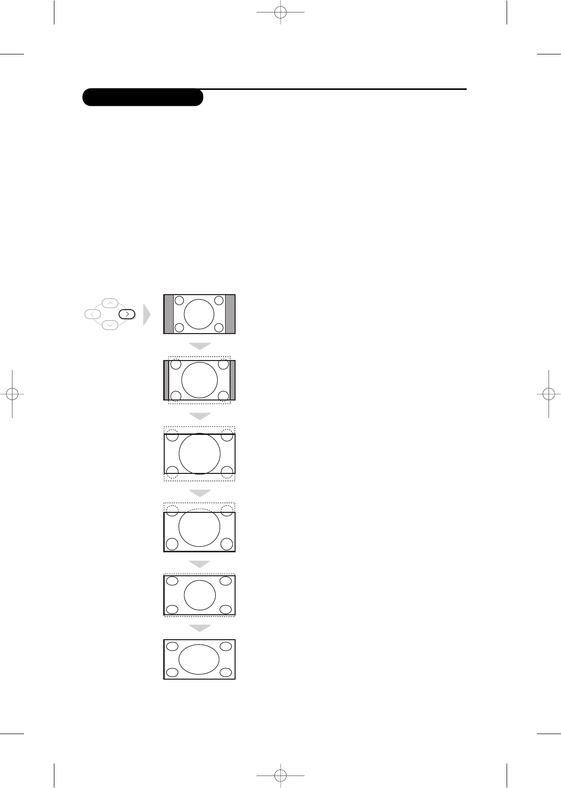 (letterbox uitzendingen). Met de 16:9 functie kunt u de zwarte balken laten verdwijnen en de