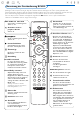 Benutzung der Fernbedienung RC4302 Achtung! Für die meisten Tasten gilt, dass die Funktion aktiviert wird, wenn die Taste einmal gedrückt wird. Durch nochmaliges Drücken wird die Funktion deaktiviert. Wenn eine Taste mehrere Optionen umfasst, wird eine kurze Übersicht angezeigt. Mehrmals drücken, um den nächsten Punkt in der Liste auszuwählen. Die Liste wird nach 6 Sekunden automatisch ausgeblendet. OK drücken, um sie sofort auszublenden. Hinweis: Im DVI-Modus sind nur einige Tasten belegt.