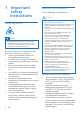 1 Important safety instructions Hearing safety Danger To avoid hearing damage, limit the time you use headphones at high volume and set the volume to a safe level. The louder the volume, the shorter the safe listening time is. Be sure to observe the following guidelines when using your earpieces. • Listen at reasonable volumes for reasonable periods of time. • Be careful not to adjust the volume continuously upwards as your hearing adapts.