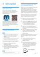 Contents 1 Important safety instructions Hearing safety General information 2 2 2 2 Your Bluetooth headphones 3 What's in the box Other devices Overview of your Bluetooth wireless headphones 3 3 3 Get started Charge the battery Pair the headphones with your mobile phone 4 Use your headphones Connect the headphones to a Bluetooth device Manage your calls and music 4 5 5 5 6 6 6 5 Technical data 8 6 Notice 9 Declaration of conformity Disposal of your old product and battery Remove the integrate