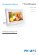 NEDERLANDS Inleiding Het digitale PhotoFrame van Philips kan verticaal en horizontaal worden geplaatst, dus het is geschikt voor alle foto’s. U kunt het PhotoFrame ergens in een kamer plaatsen voor een voortdurende weergave van foto’s door het PhotoFrame aan te sluiten op netspanning. 1. Belangrijke informatie 1.
