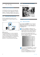 Collage Selecteer Collage om meerdere foto’s tegelijk op het scherm weer te geven. 1 • Druk op de knop Mode om het hoofdmenu te openen. • Navigeer omhoog naar Settings (Instellingen) en druk op de knop Play/ OK. 2 • Navigeer omlaag om Collage te openen en navigeer naar rechts. • Navigeer omhoog en omlaag om Off (Uit) of Random (Willekeurig) te selecteren. • Druk ter bevestiging op Play/OK. 6.