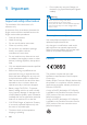1 Important • Do not place any sources of danger on the device (e.g. liquid filled objects, lighted candles). Warning Important safety information The translation of this document is for reference only. In the event of any inconsistency between the English version and the translated version, the English version takes precedence. • Follow all instructions. • Heed all warnings. • Do not use this device near water. • Clean only with dry cloth. • Do not block any ventilation openings.