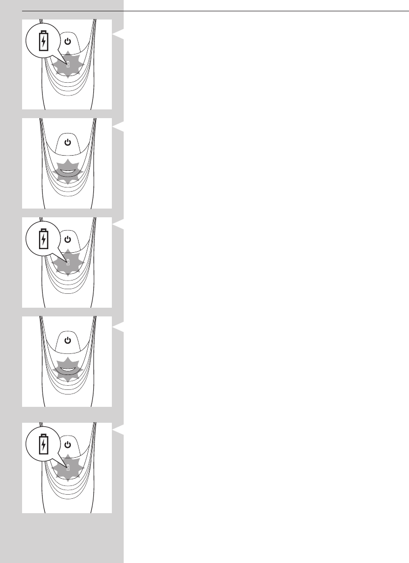 baterija ir gandrīz tukša (ja skūšanai palikušas 5 vai mazāk minūtes). Izslēdzot