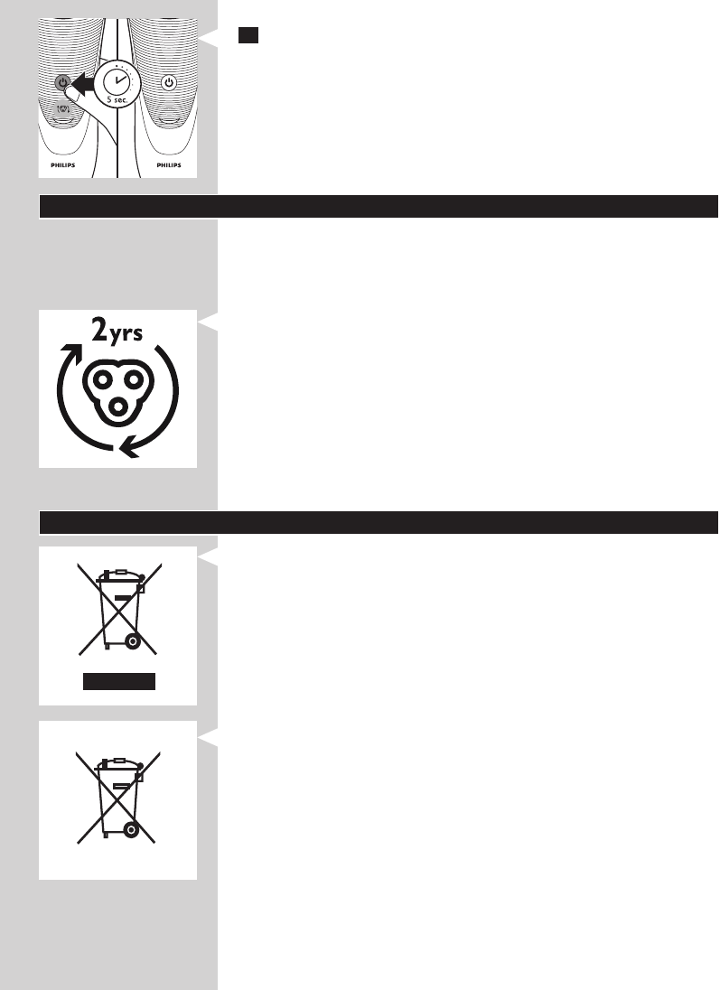 - Vă recomandăm să înlocuiţi capetele de bărbierire la ecare doi ani.