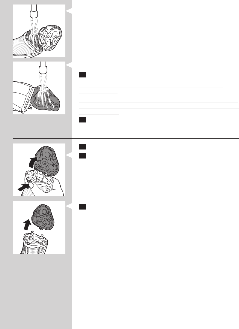 - Изплакнете отделението за косми и вътрешността на бръснещия блок.