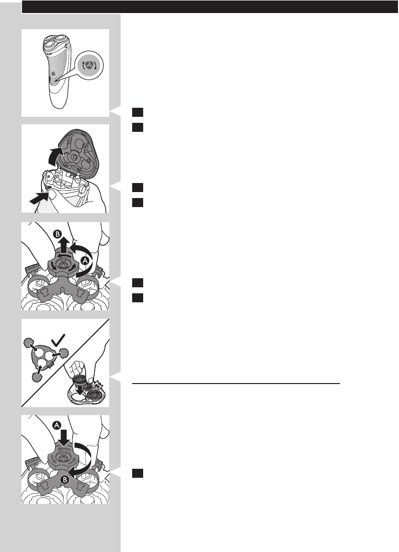 6 Vyjměte holicí hlavy a do holicí jednotky vložte nové hlavy.