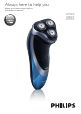 EESTI 47 Sissejuhatus Õnnitleme ostu puhul ja tere tulemast kasutama Philipsit! Philipsi tootetoe paremaks kasutamiseks registreerige oma toode saidil www.philips.com/welcome. Palun lugege see pardli oivalisi omadusi tutvustav kasutusjuhend läbi. Sellest leiate ka näpunäiteid, kuidas raseerimist kergemaks ja nauditavamaks teha.