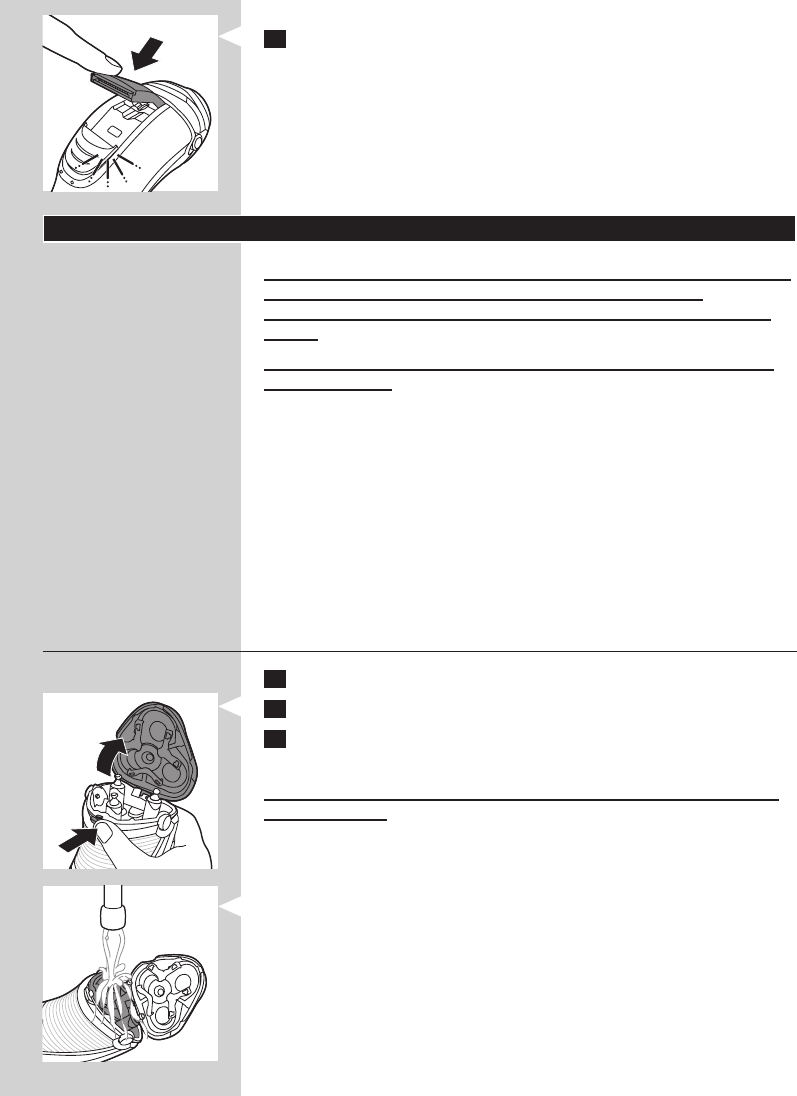 Uwaga: Podczas płukania z gniazda u dołu golarki może wyciekać woda. Jest