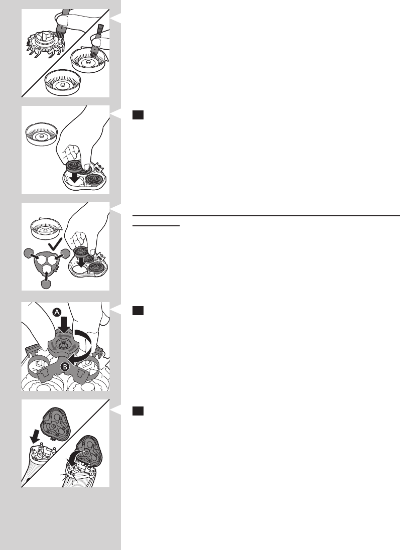 6 Umieść głowice golące z powrotem w elemencie golącym.
