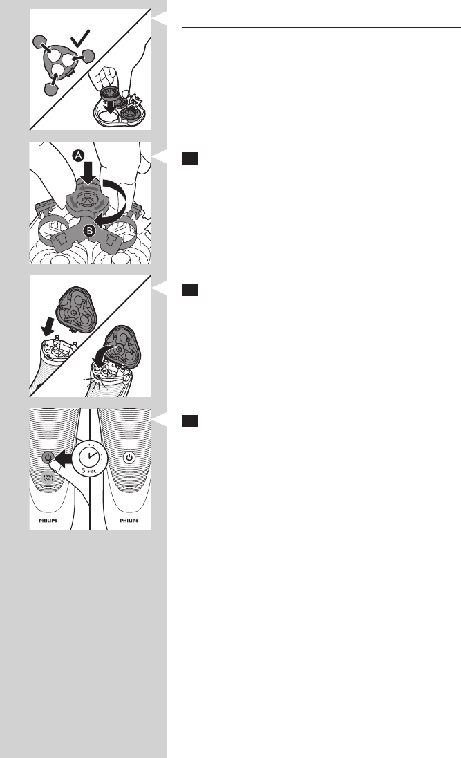 7 Встановіть фіксуючу рамку на бритвений блок (A) і поверніть