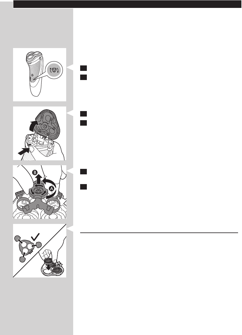 6 Vegye ki a borotvafejeket, és helyezze be az újakat a borotvaegységbe.