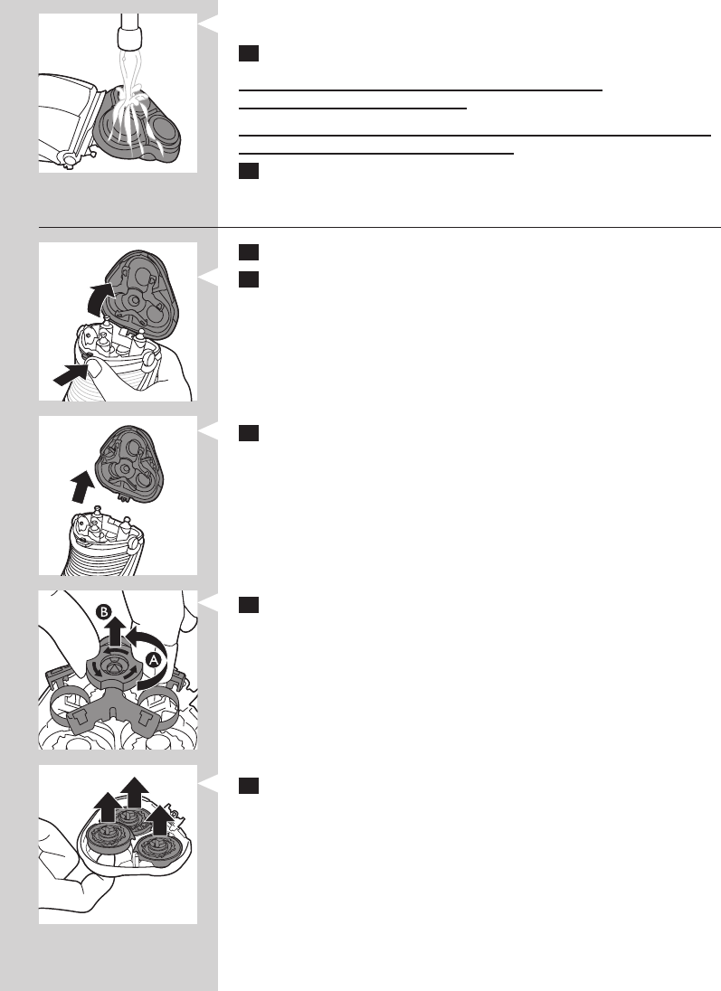 5 Nuimkite ir išvalykite po vieną skutimo galvutę. Kiekvieną skutimo