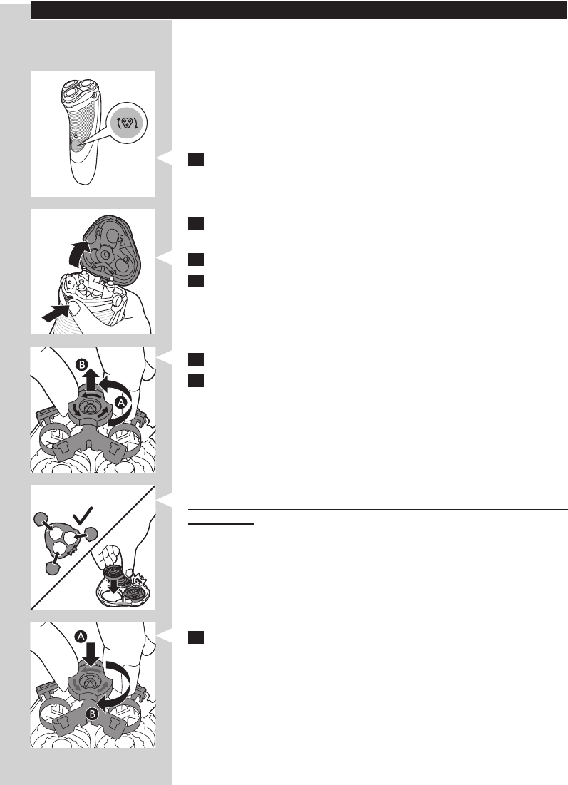 6 Zdejmij głowice golące z elementu golącego i załóż nowe.